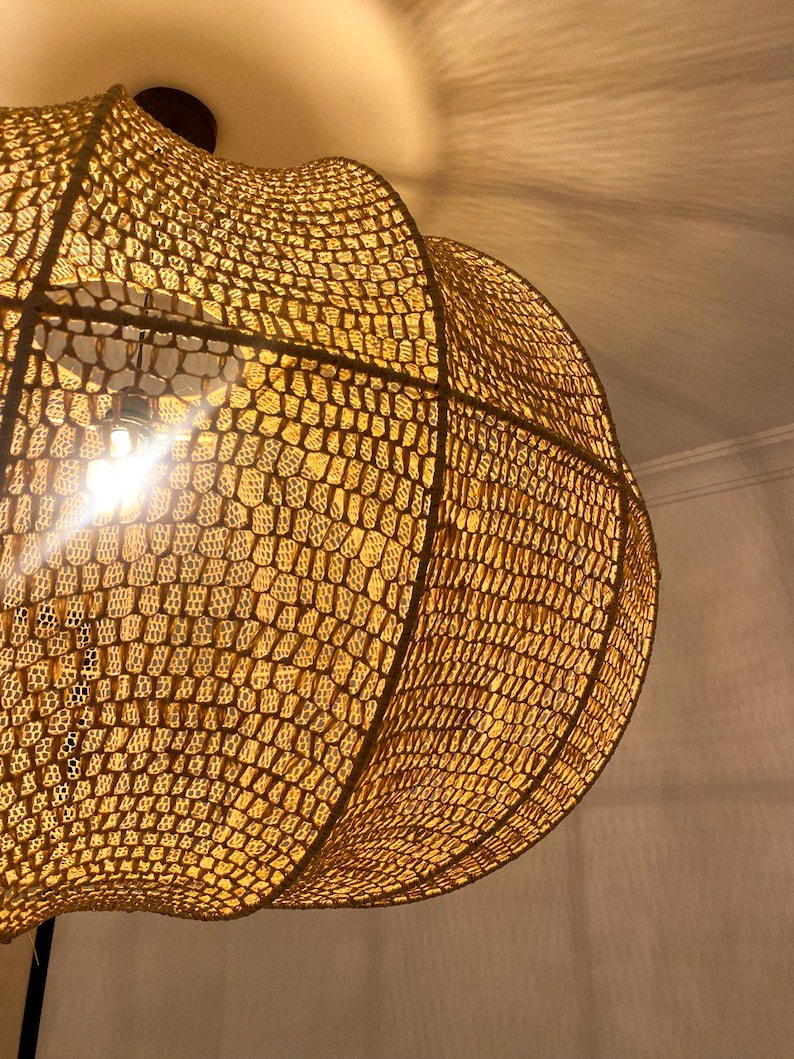 Handgeweven Golfvormige Hanglamp – Grote Raffia Plafondlamp Prijsklasse: € 65,00 tot € 195,00