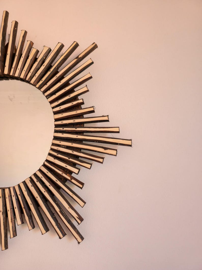 Deze veelzijdige spiegel kan aan de muur worden gehangen of op een oppervlak worden geplaatst. Ideaal voor woonkamer, slaapkamer, hal of badkamer. De warme tinten passen perfect bij boho, coastal, rustieke en minimalistische interieurs.