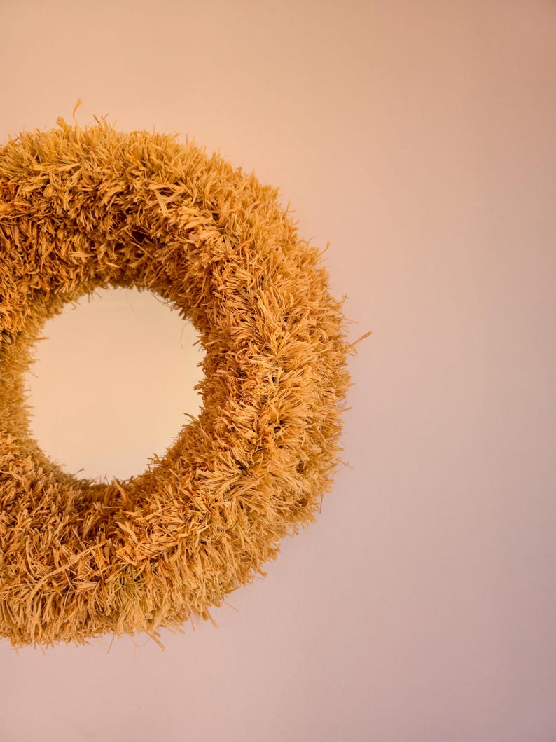 Verrijk je interieur met deze handgeweven Marokkaanse raffia spiegel. Gemaakt van natuurlijke raffia en palmbladkoord, waarbij elke spiegel het authentieke vakmanschap van ambachtslieden laat zien.