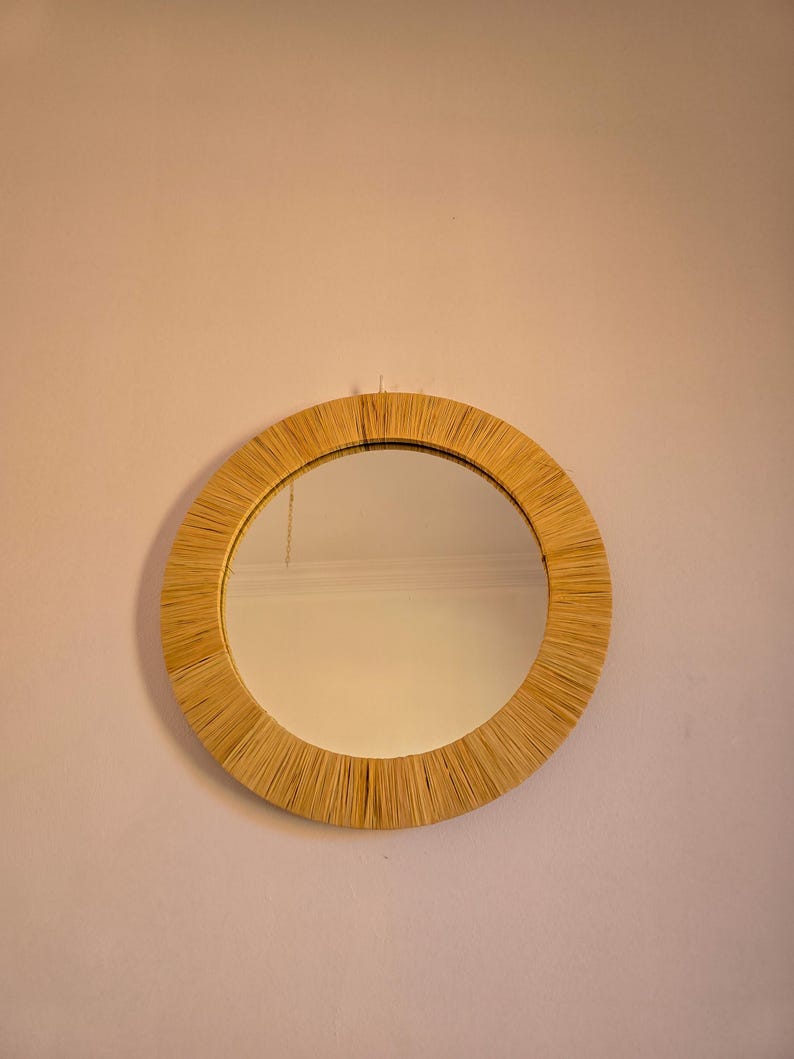De zachte organische textuur en bohemian uitstraling maken deze spiegel een prachtig accent voor woonkamer, slaapkamer, hal of badkamer. Perfect voor boho, coastal, rustieke en minimalistische interieurs.