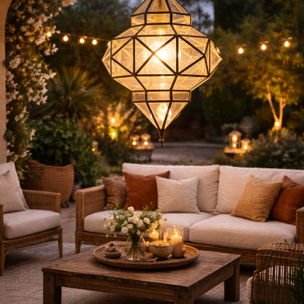 Geometrische Marokkaanse Hanglamp – Glas en Metaal Plafondlamp