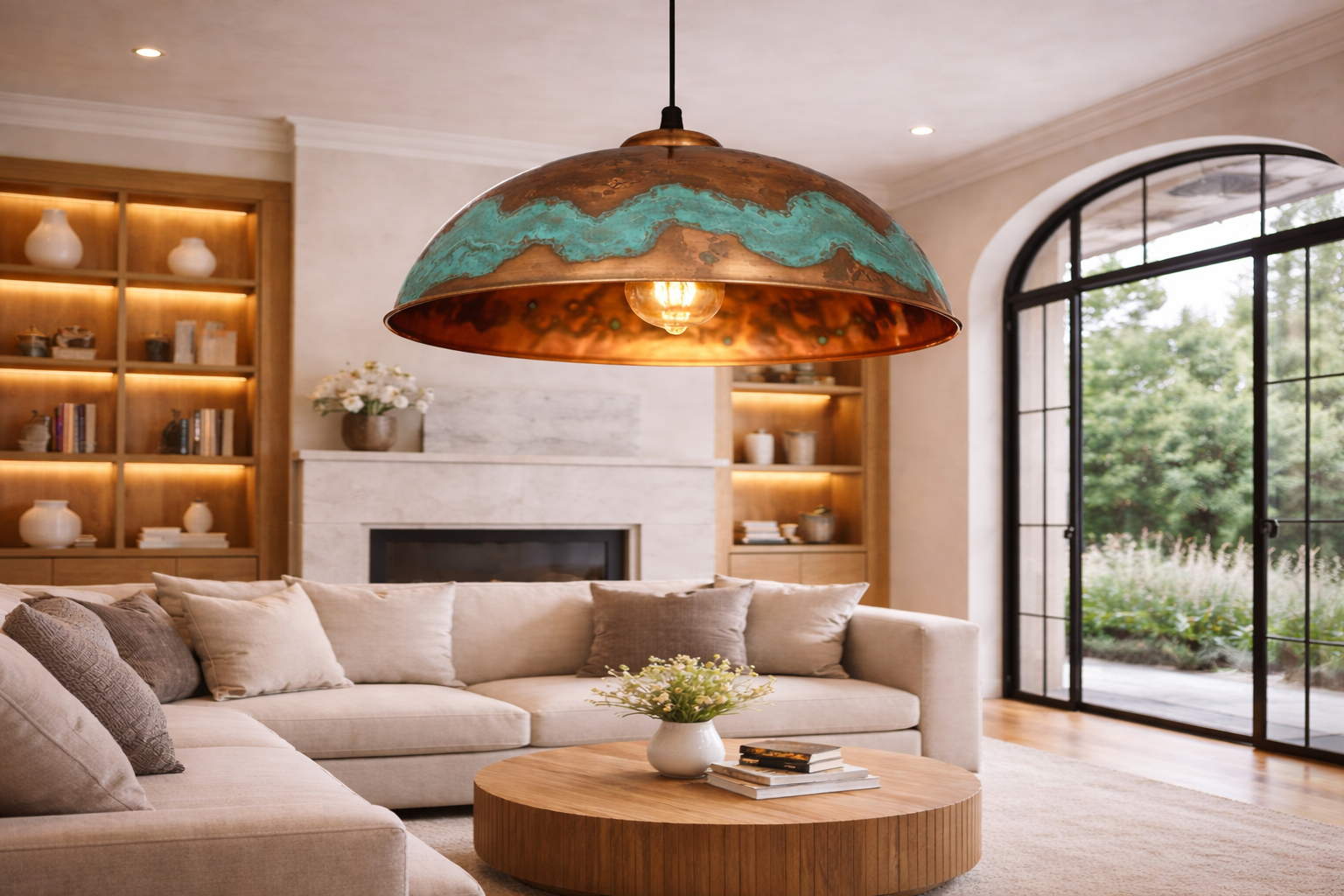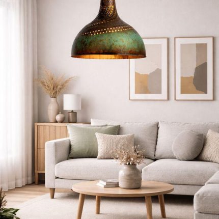 Handgemaakte Geoxideerde Koperen Koepel Hanglamp