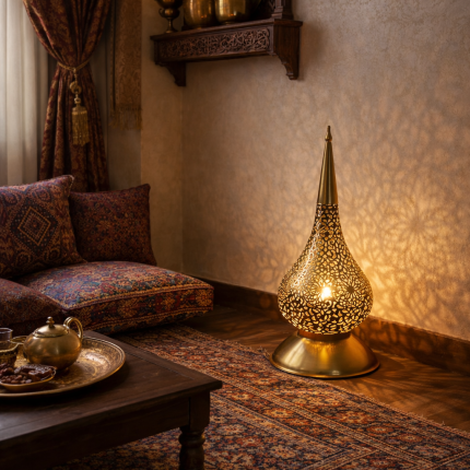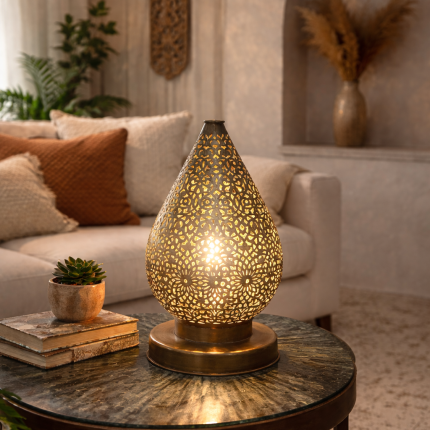 Marokkaanse Geperforeerde Messing Tafellamp – Druppelvorm