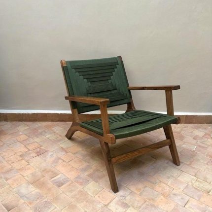Walnoothouten Fauteuil met Groen Koord Zitting